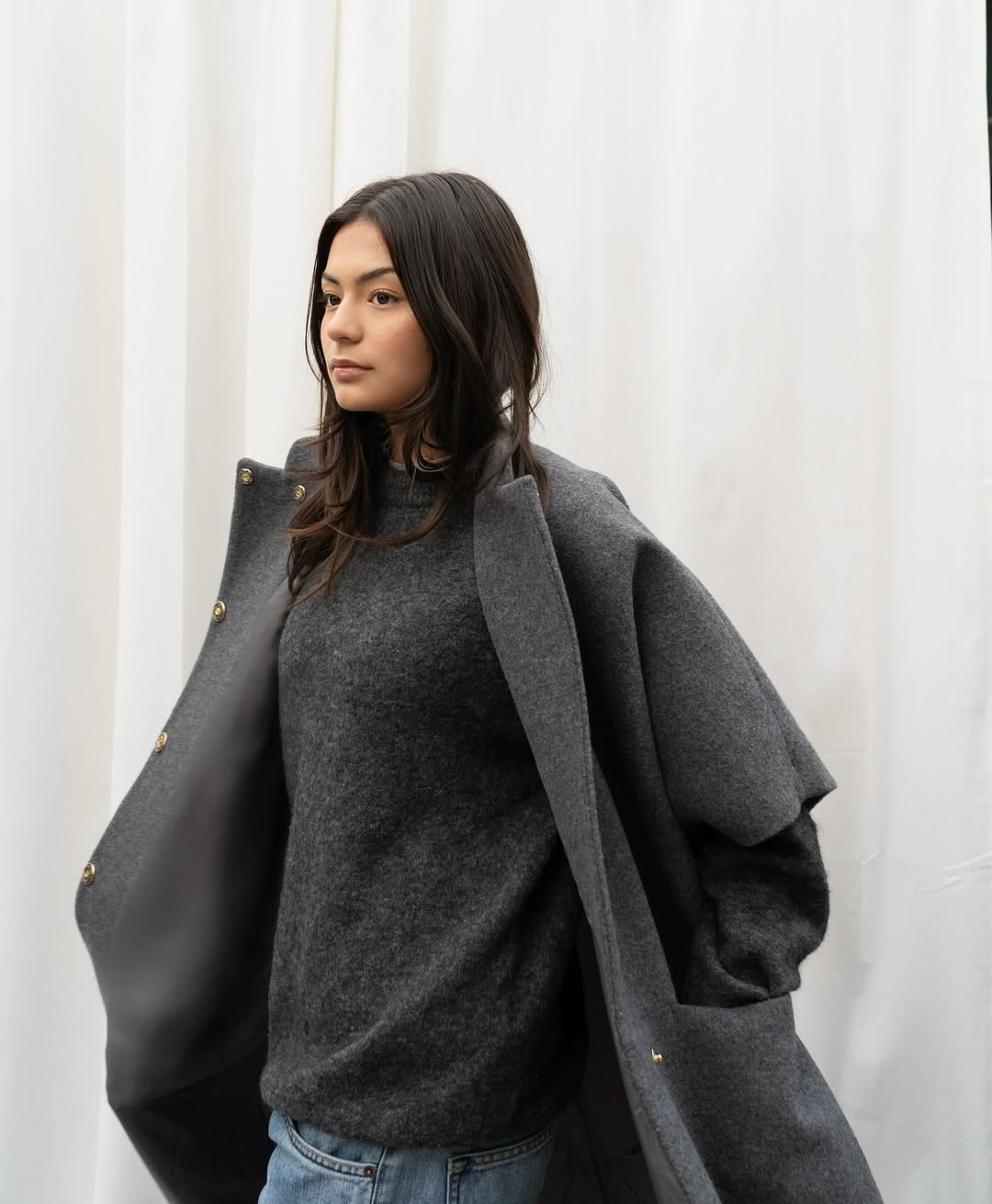 The Mok wool coat is crafted from 100% Australian high-quality Merino wool. Our production is based the EU, a conscious and sustainable choice.